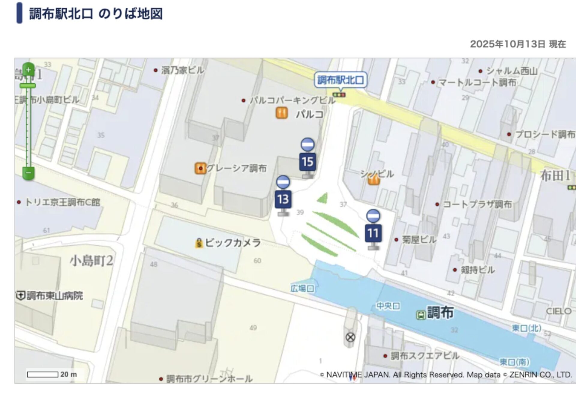 京王/小田急バス 調布駅北口時刻表はこちらから